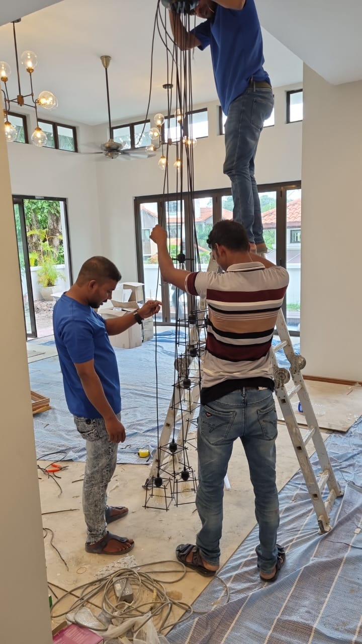 Safe rewiring, lighting setup, and air-con point installation — handled by certified technicians following local standards.